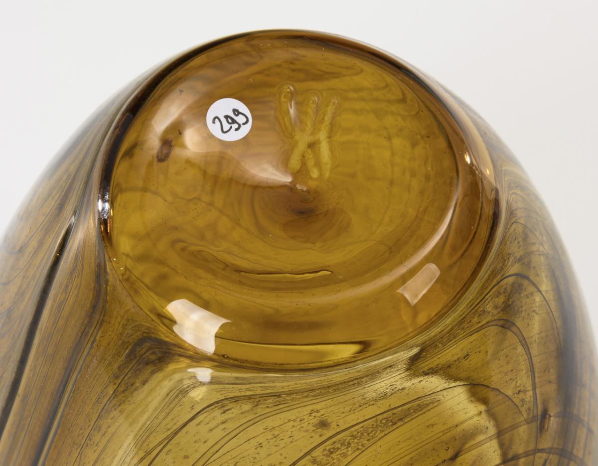 Montiertes und vor der Lampe geblasenes farbloses und gelbes Glas, Aufschmelzung von Glasemail in Braun. H 14,5 cm.