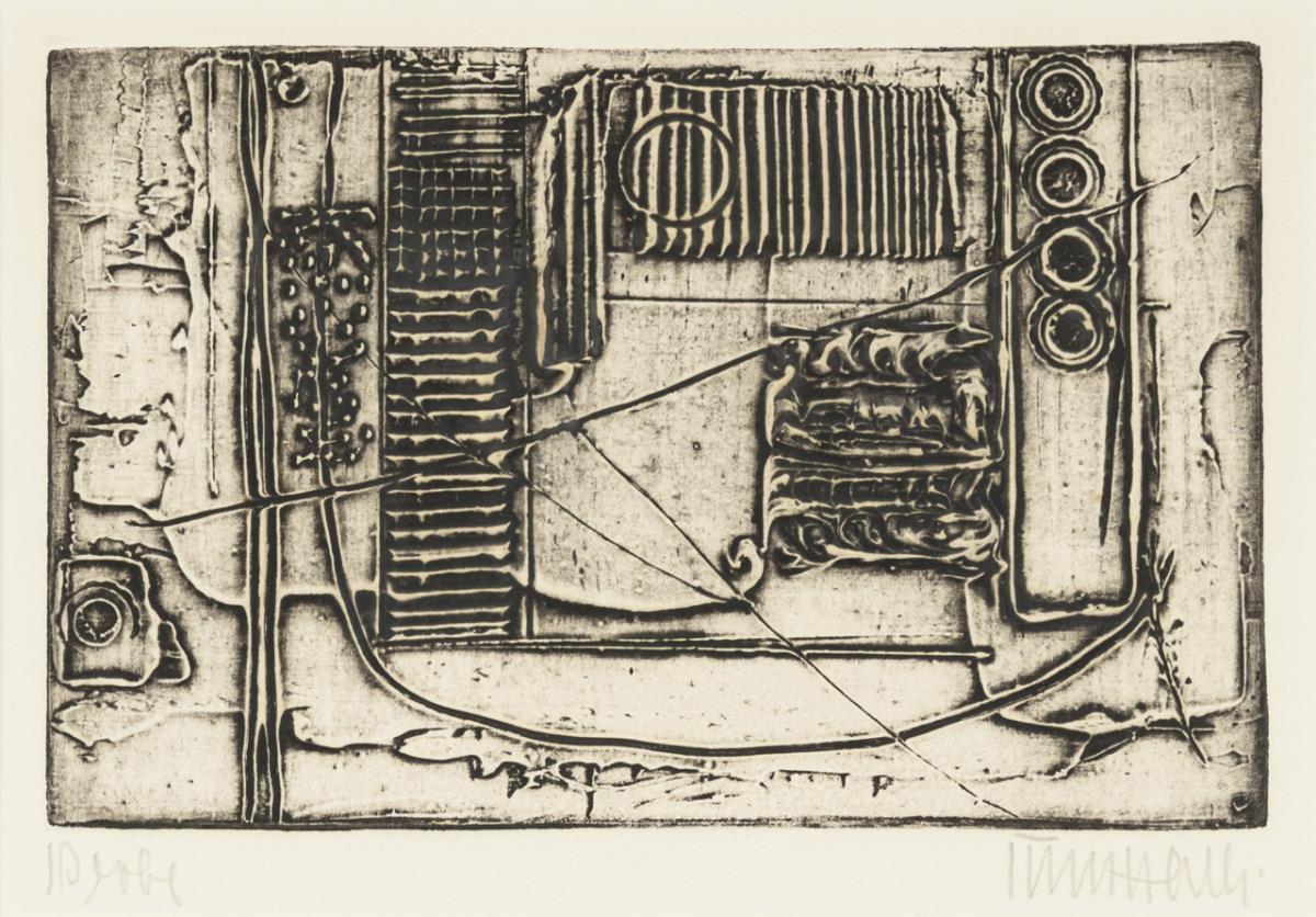 Radierung, Prägedruck. Bleistiftsignatur. Probedruck.