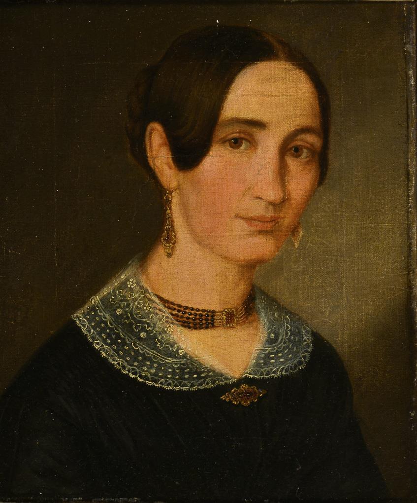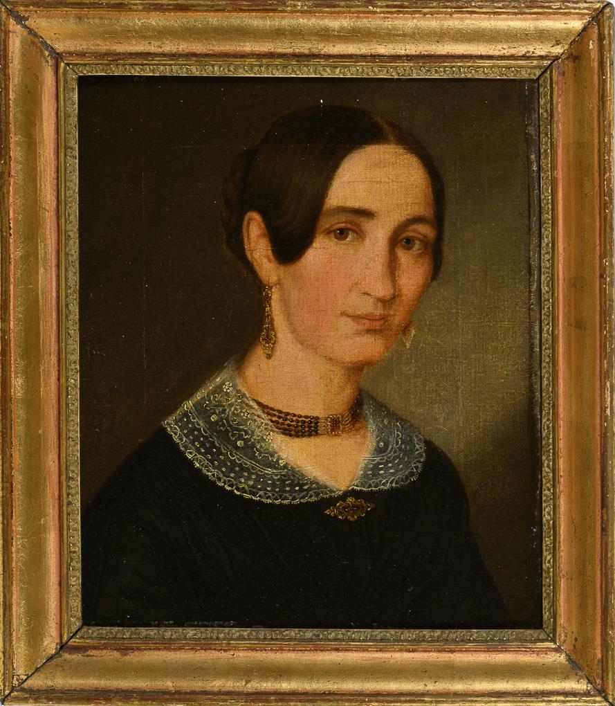 Öl/Leinwand. Unsigniert, verso auf altem Klebezettel als "Albertine Eble" bezeichnet. 1. H. 19. Jh.