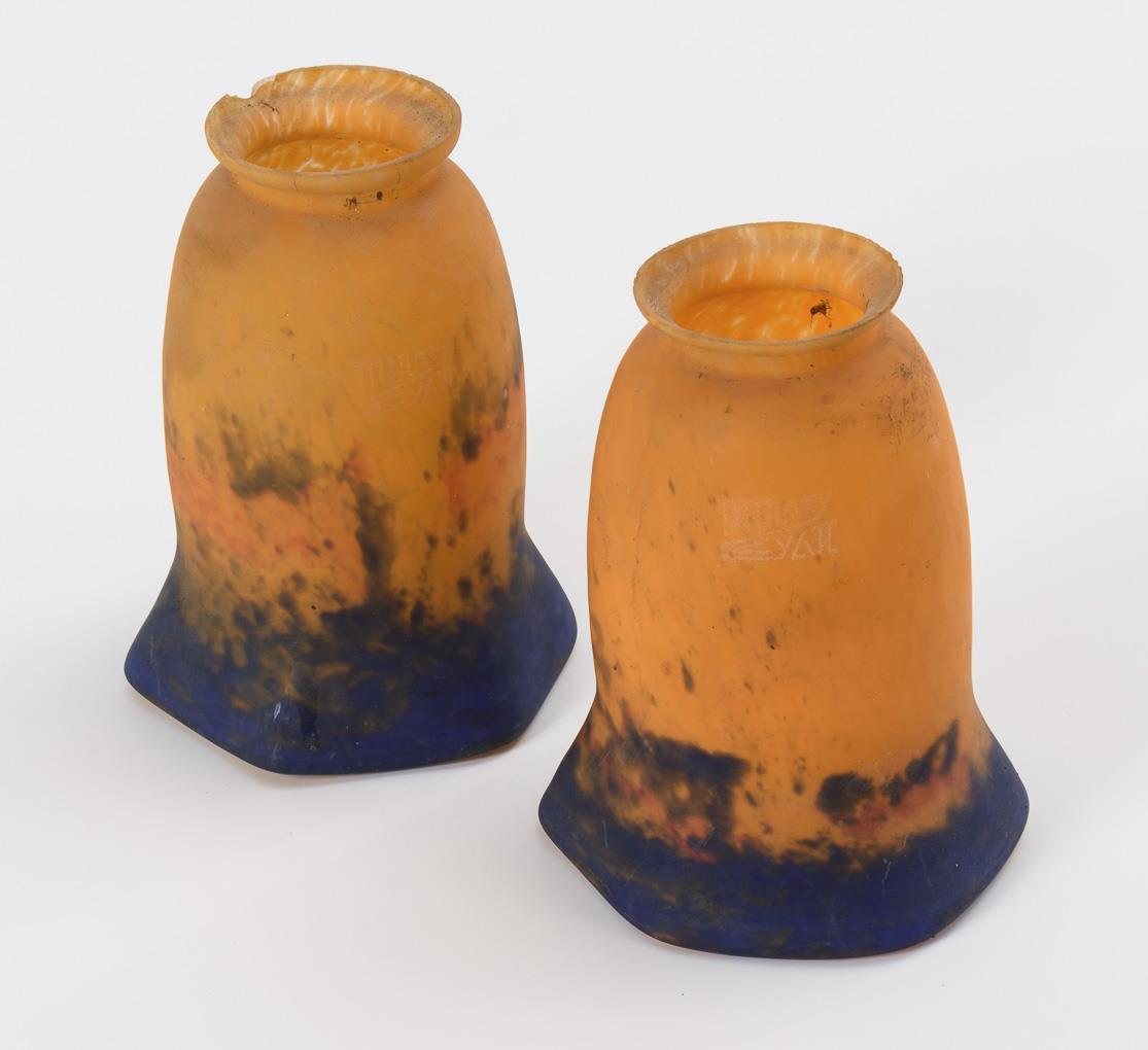Paar Jugendstil-Wandlampen. Verreries de la Mulatière, La Mulatière/Rhône.