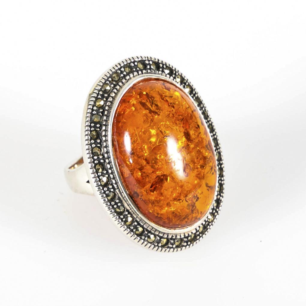 Ring mit großem Bernstein und Markasiten.