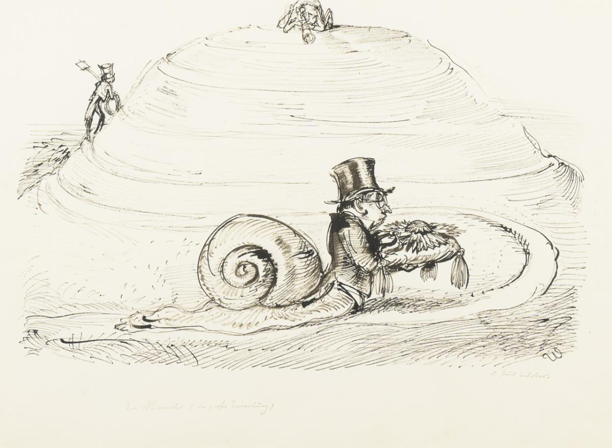 Tuschzeichnung. Bleistiftsignatur, monogrammiert "W".