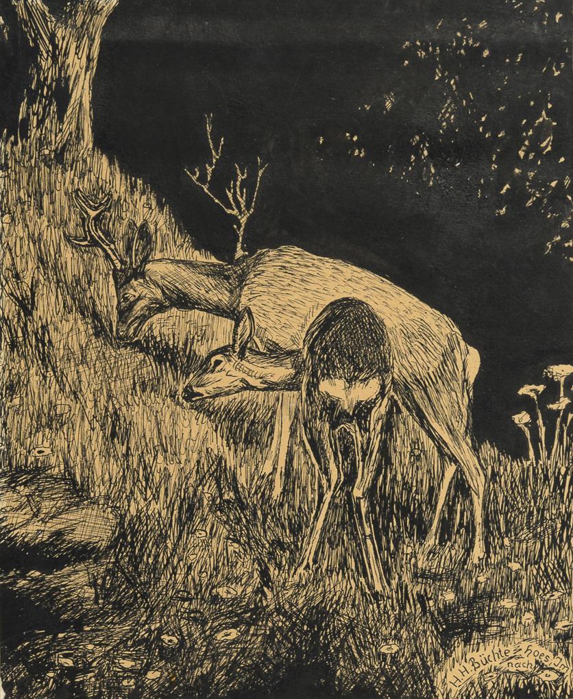 Tuschzeichnung. Stiftsignatur.