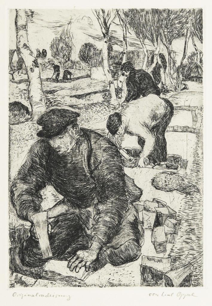 Herr beim Korbflechten, Platte: 20,5 x 14,5 cm | Steinsetzer beim Pflastern eines Weges, Platte: 20,5 x 14,5 cm | Dame beim Bleichen der Wäsche, Platte: 14,5 x 20,5 cm.