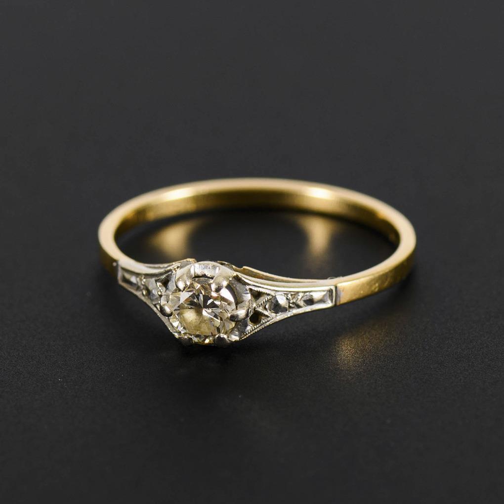 Gelbgold 750 geprüft. Brillant Ø ca. 3,8 mm. Ringgröße 56. 1,8 g.
