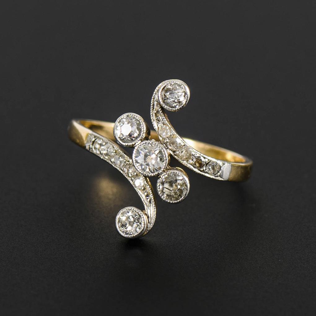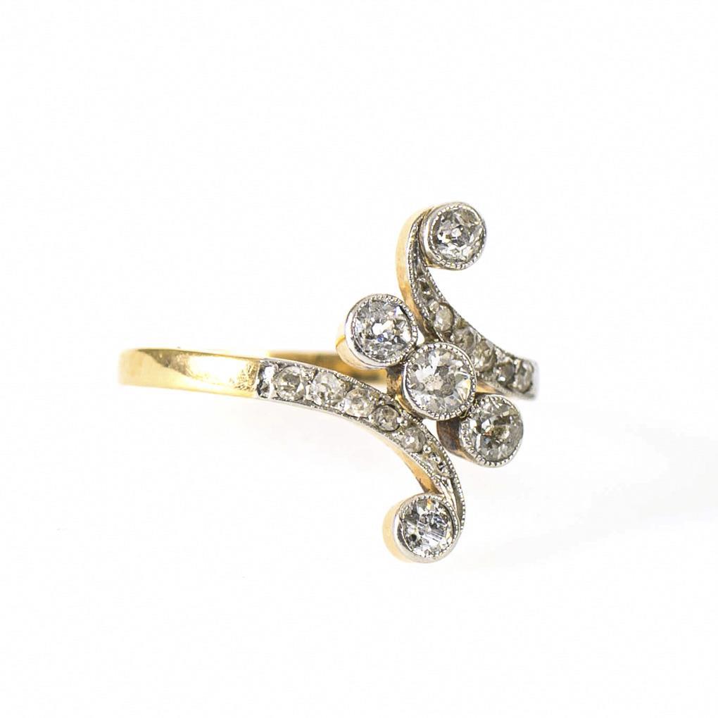Jugendstilring mit Altschliff-Brillanten und Rosendiamanten.
