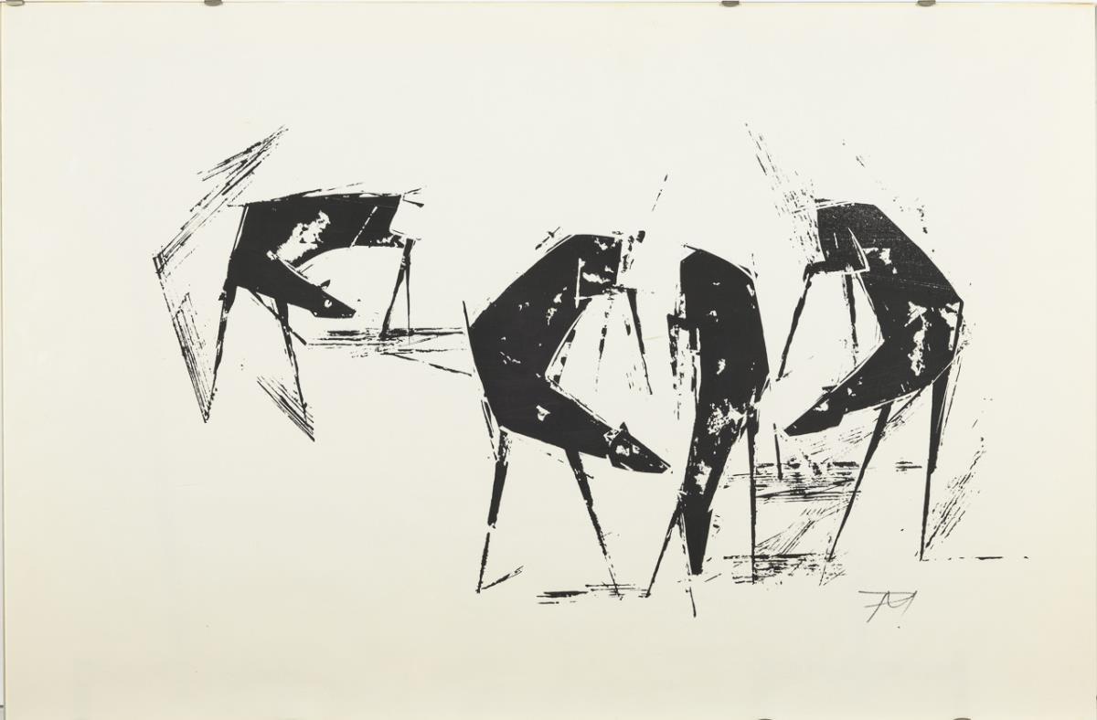 Undeutlich signiert: 4 abstrahierte Windhunde