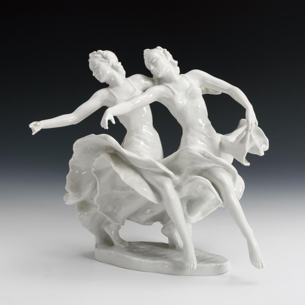 Plastik des tanzenden Geschwisterpaares Hedi und Margot Höpfner. 1 Hand restauriert, 1 Finger locker.