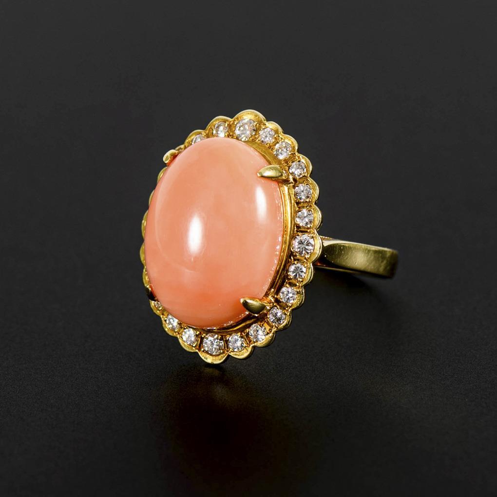 Entouragering mit Koralle und Brillanten.