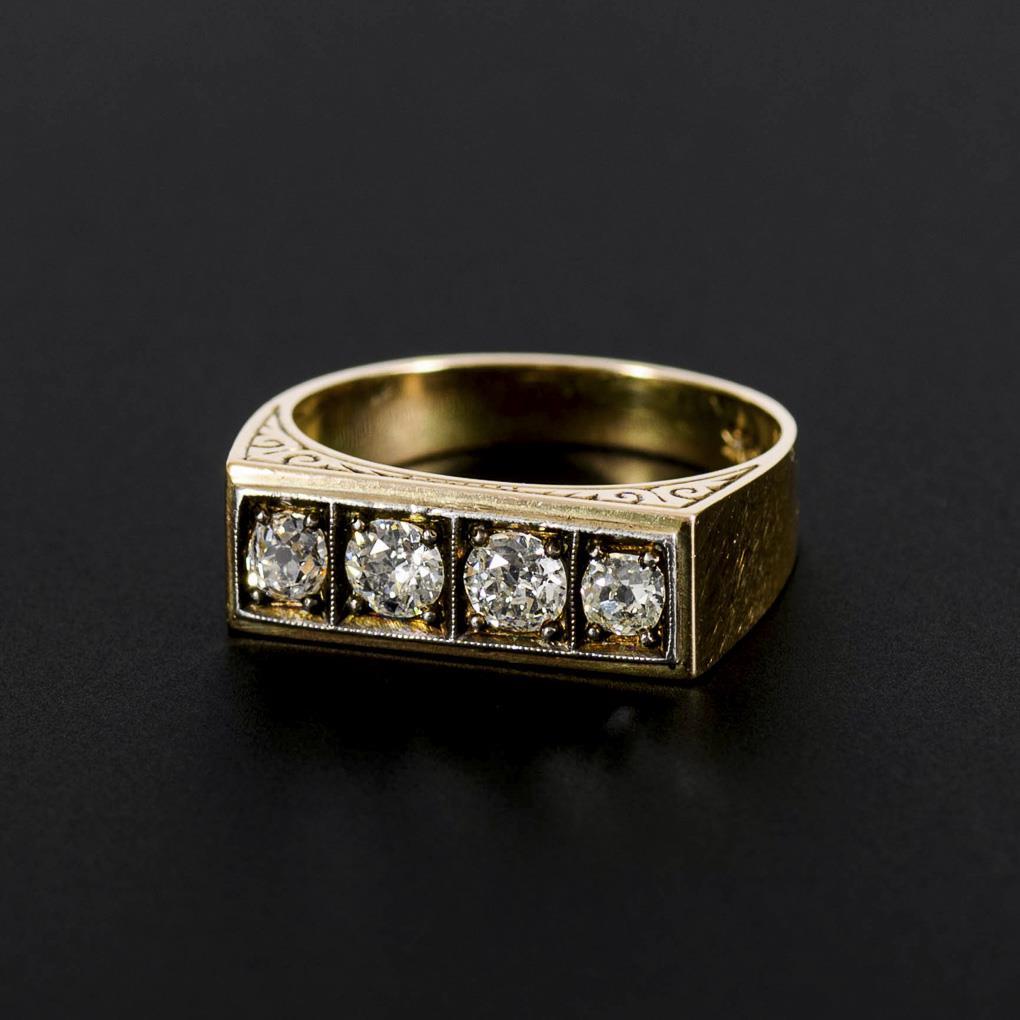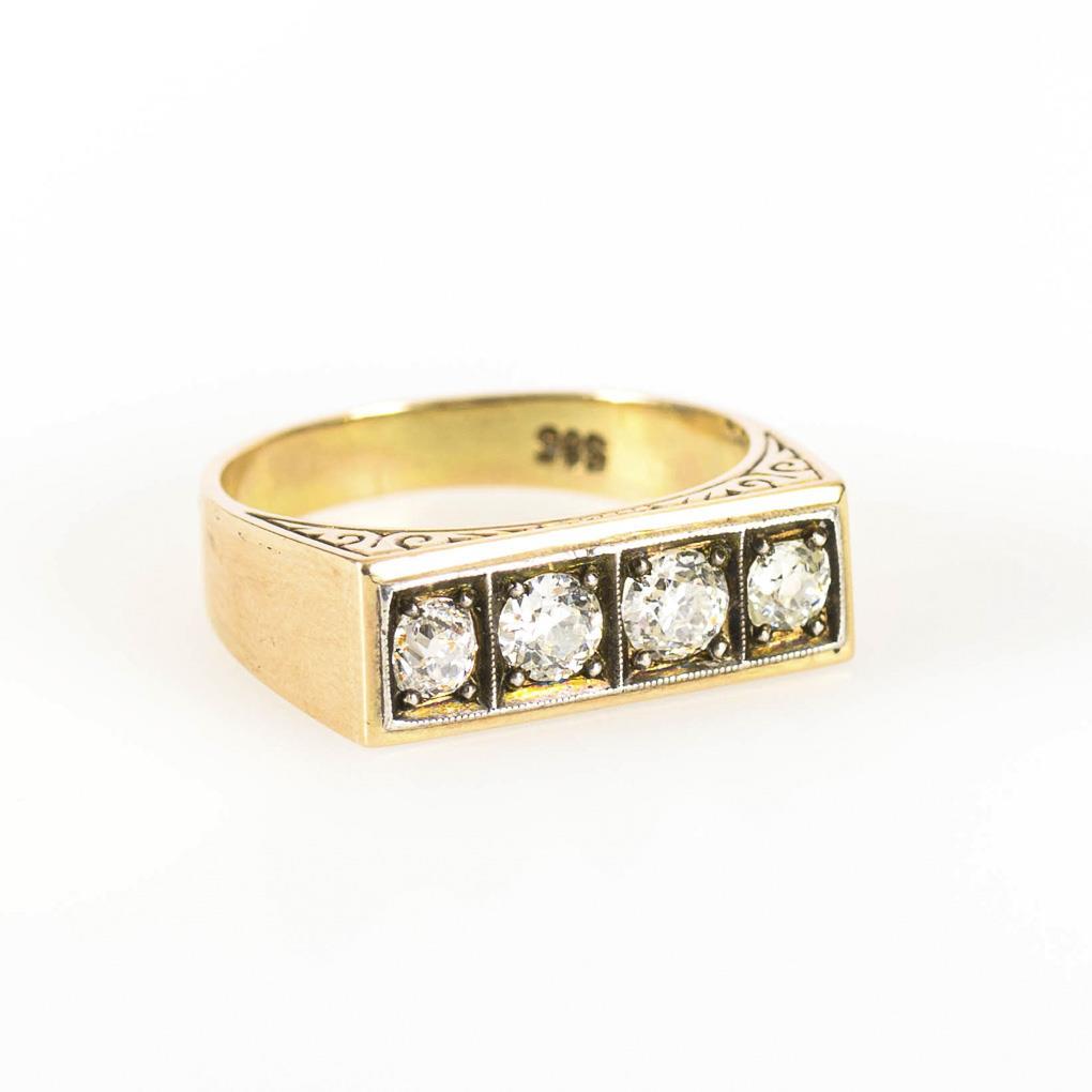 Art-déco-Ring mit Altschliff-Brillanten.