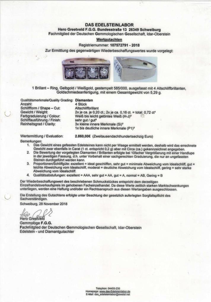 4 eingelassene Brillanten, zwischen mittlerer Verlaufschiene.