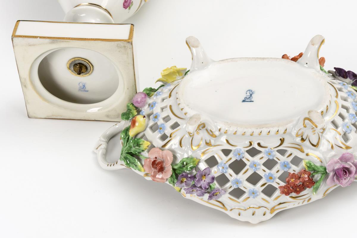 Vase und Durchbruchkorb. Potschappel.