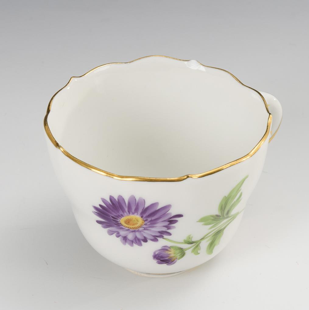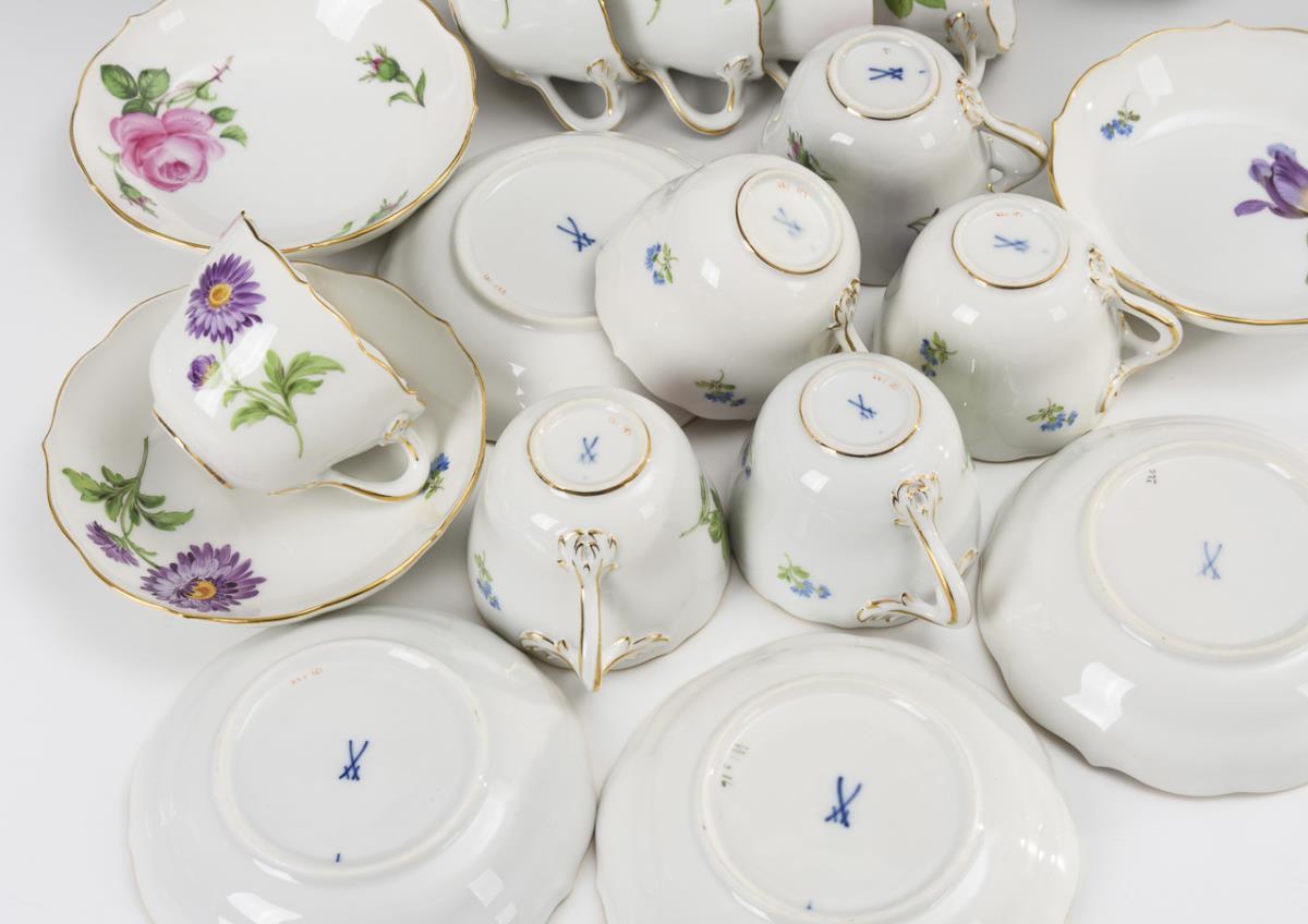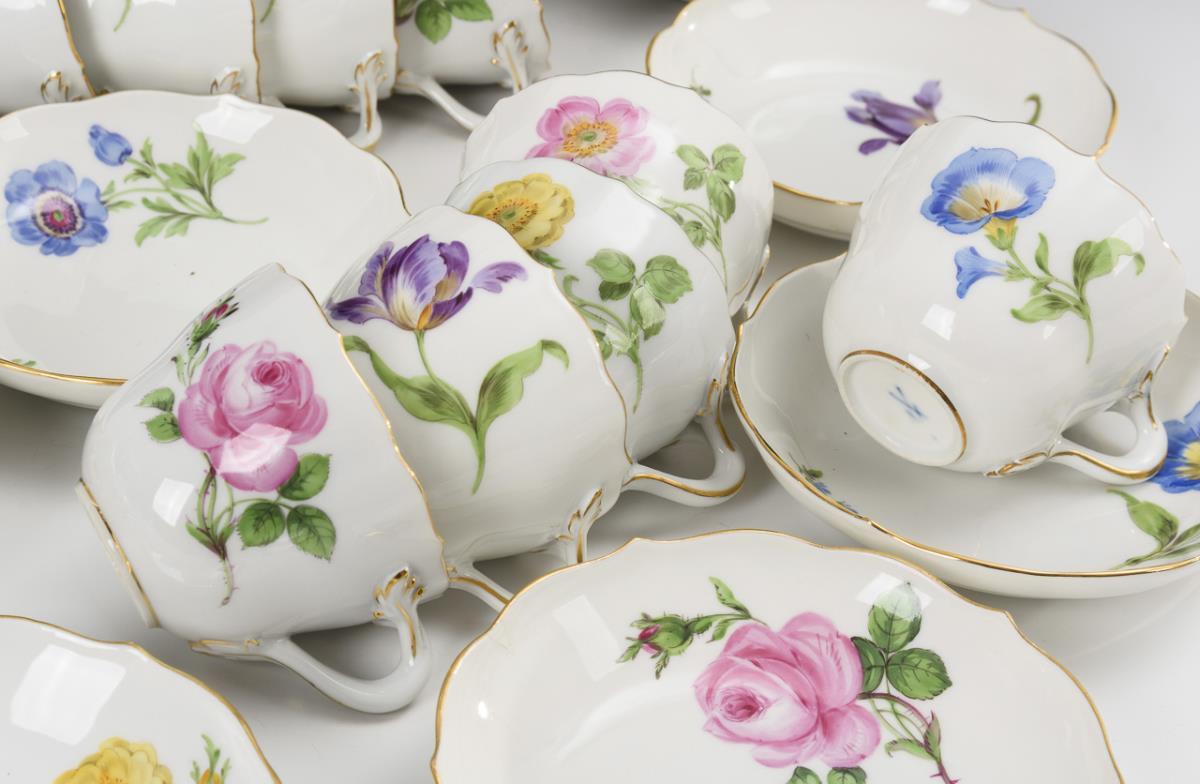 12 Mokkatassen mit Blumenmalerei. Meissen.