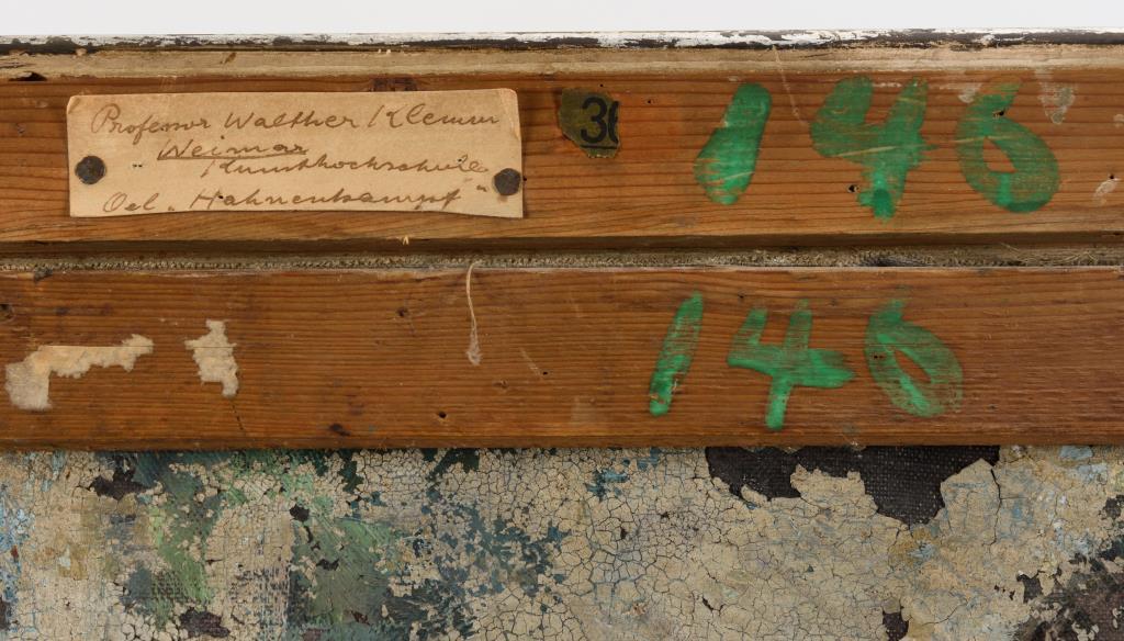 Öl/Leinwand.Rechts unten signiert, verso auf altem Klebezettel bezeichnet/betitelt mit Zusatz Kunstschule Weimar.