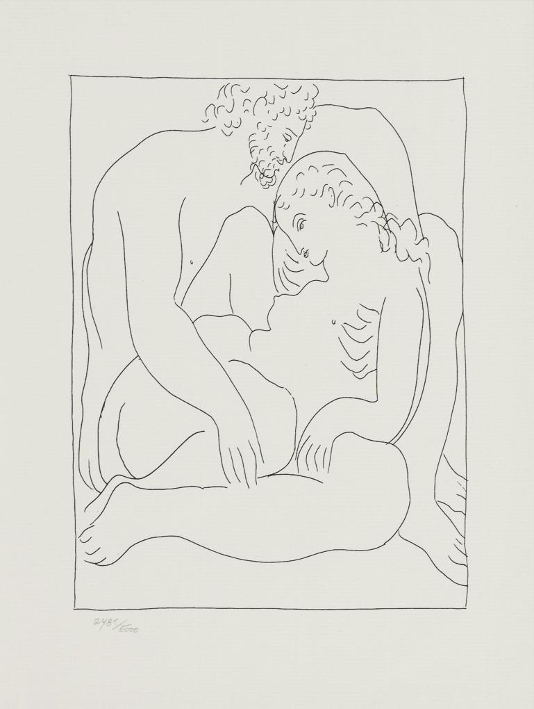 2 lithografische Abzüge nach Radierungen aus dem "Ovide" Zyklus: ""Deucalion et Pyrrha creent un [...]" und Amours de Jupiter et de Semele", je 1 von 5000 Exemplaren, Editons d'art Albert Skira, Genf, 1971