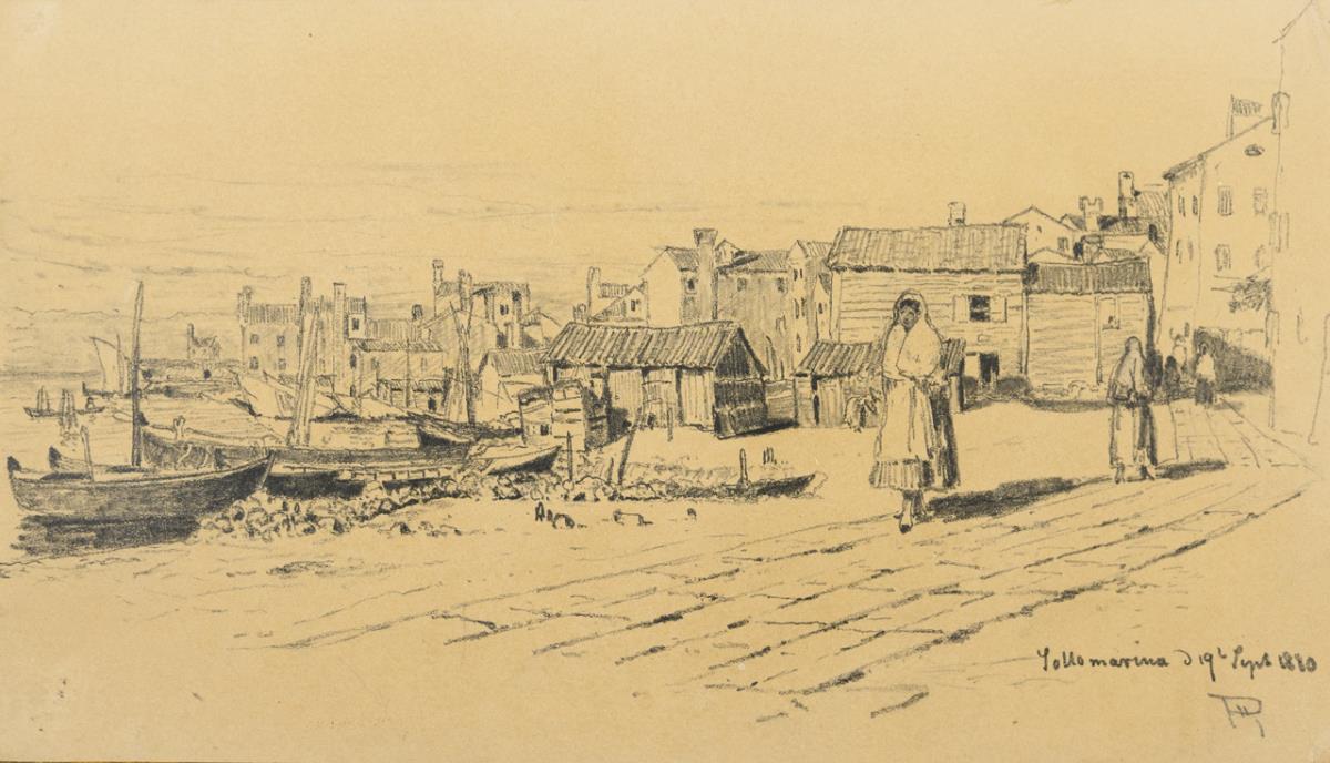 2 Werke mit südländischen Genreszenen am Hafen von Sottomarina (Chioggia) in Italien. Blatt je gebräunt und fleckig, an den Ecken je geknickt.