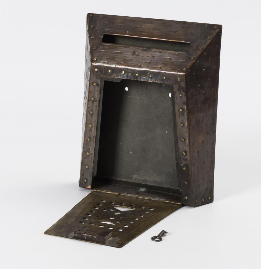 Kupfer- und Messingblech, Rückwand Zinkblech. 24 x 20,5 x 4 cm.