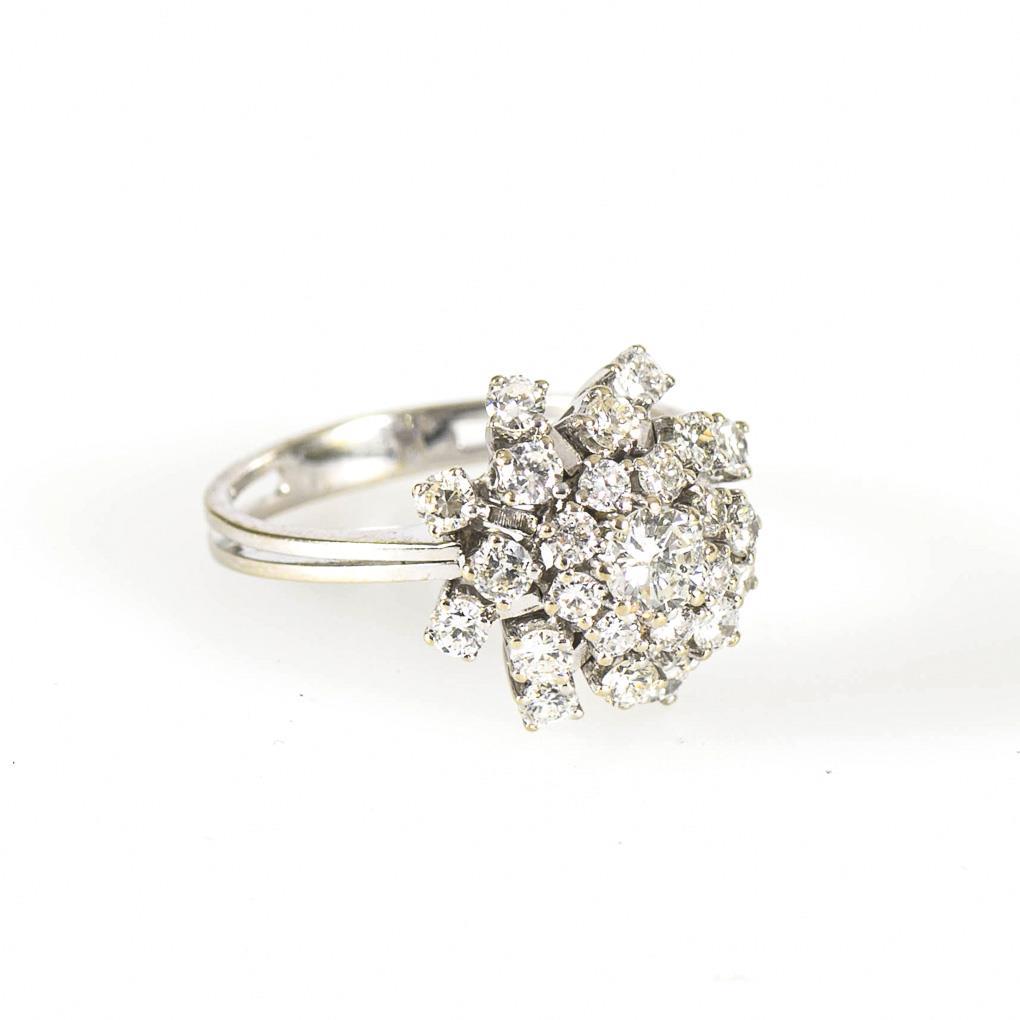 Weißgold 585 gestempelt. Mittelstein 0,44 ct. Brillanten total 1,90 ct/Wesselton/si. 6,9 g.
