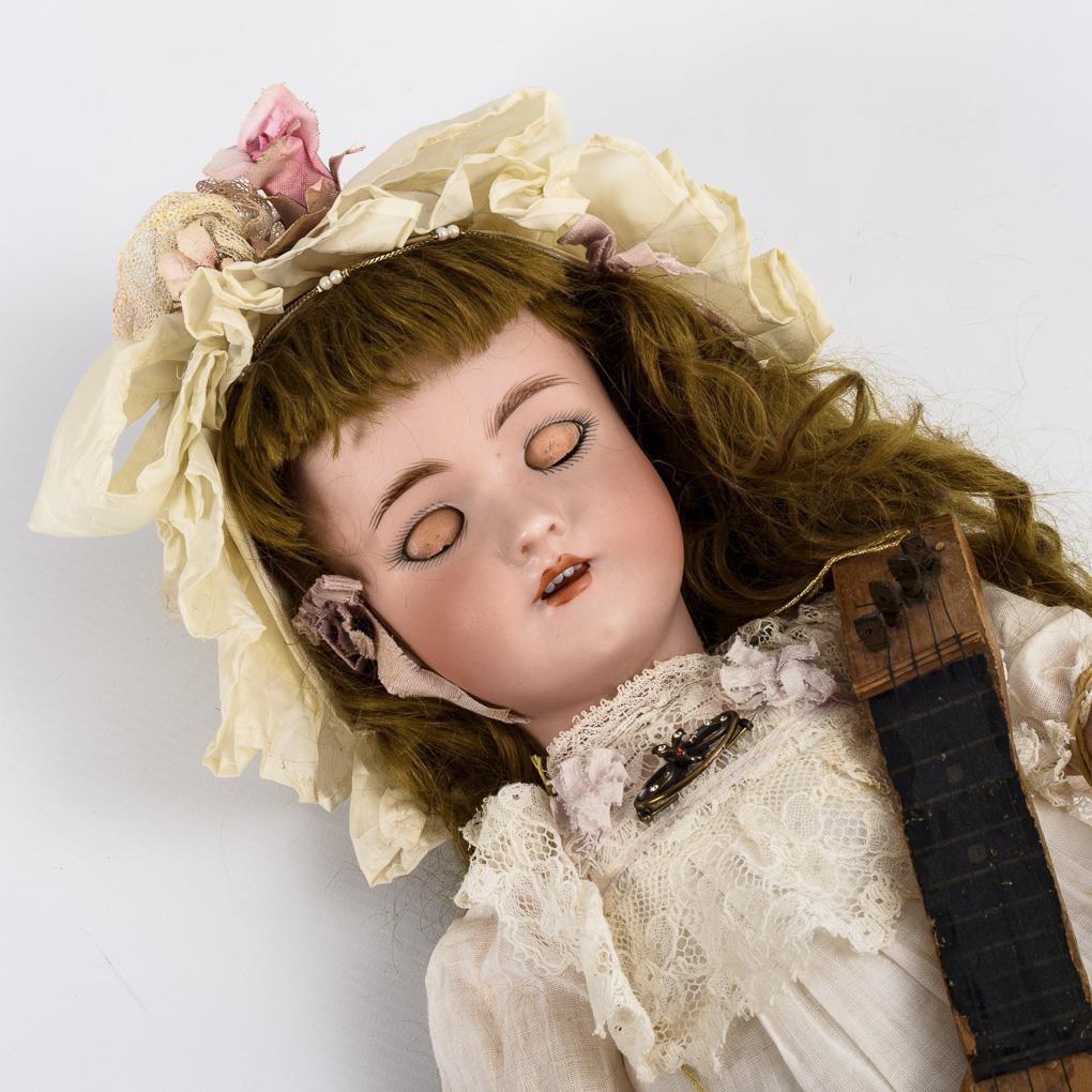 Mädchenpuppe mit Laute. Heinrich Handwerck / Simon & Halbig.