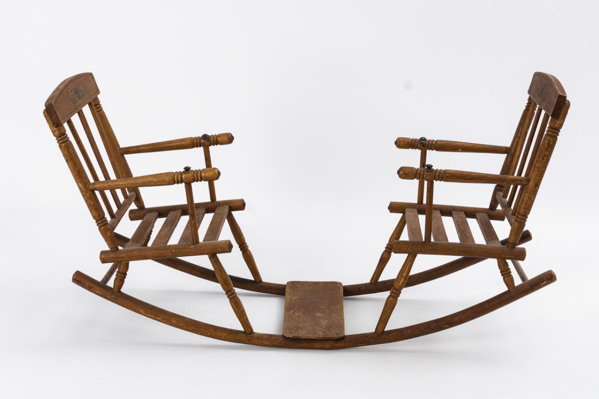 Einfache Wippe mit 2 Armlehnstühlen. Leichte Altersspuren.