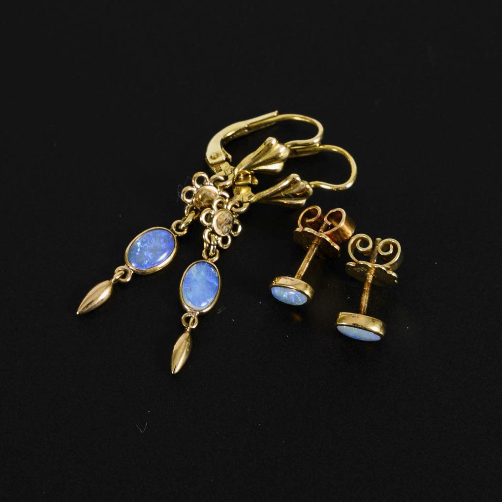Ohrhänger- und Ohrsteckerpaar mit Opalen.