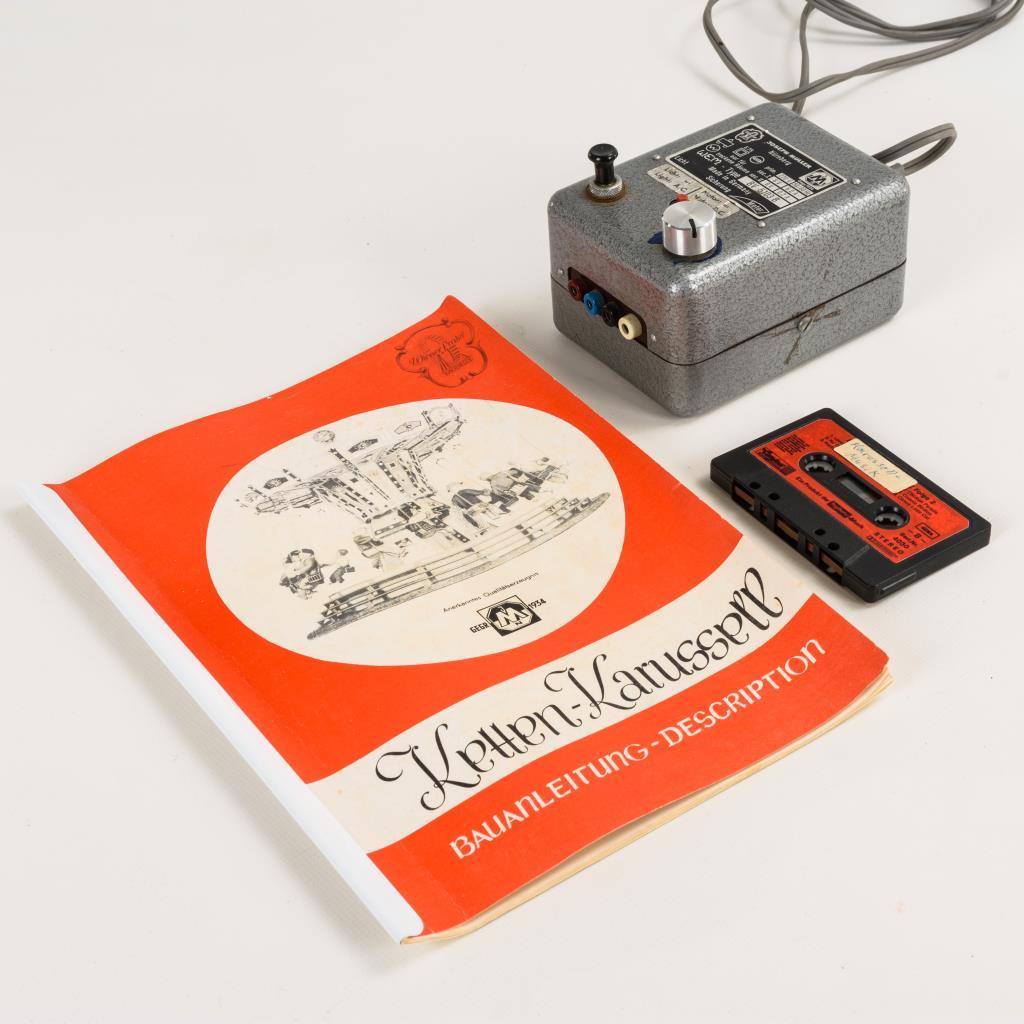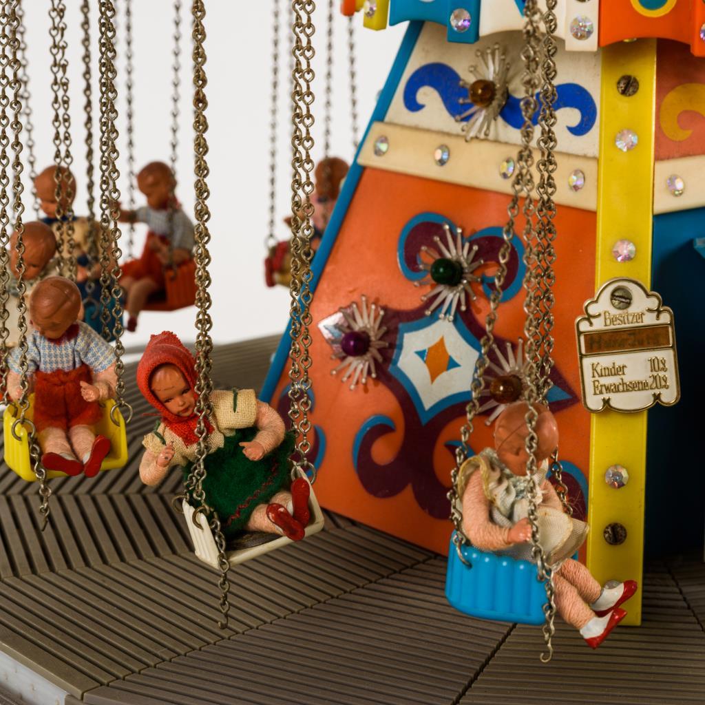 Mit 16 Kettenschaukeln, Kassenhäuschen, bunter Beleuchtung und eingestellter Orgel "Wilh. Bruder Söhne Waldkirch i B". Dazu 17 Biegepüppchen, Kassette mit passender Musik, Bauanleitung und Antriebsmotor. Funktion nicht geprüft.