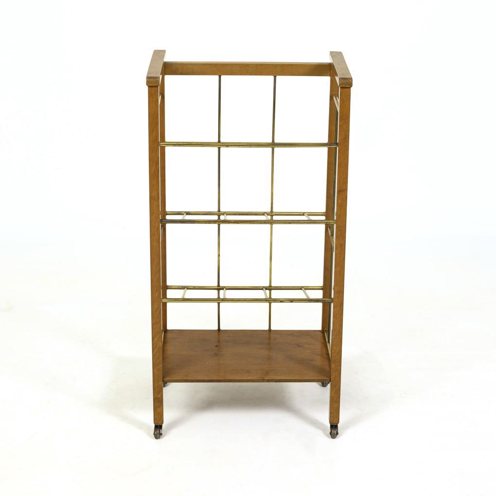Rollbarer, handlicher Zeitungswagen mit 3 messingverstrebten Ablagen und 1 Ablagefläche. Leichte Alters-/Gebrauchsspuren, Messing mit Korrosionsspuren.