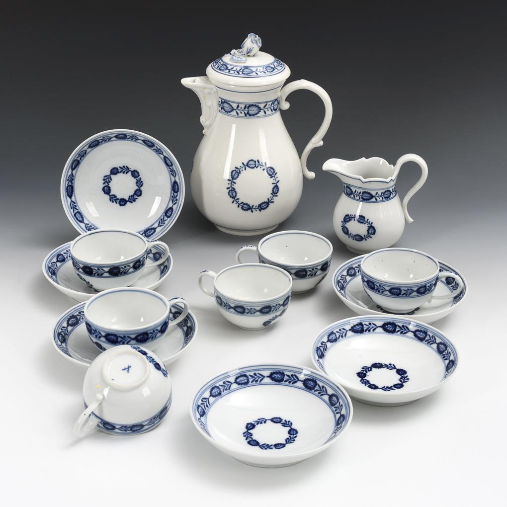 14 Teile eines Kaffeeservice mit Blaumalerei. Meissen.
