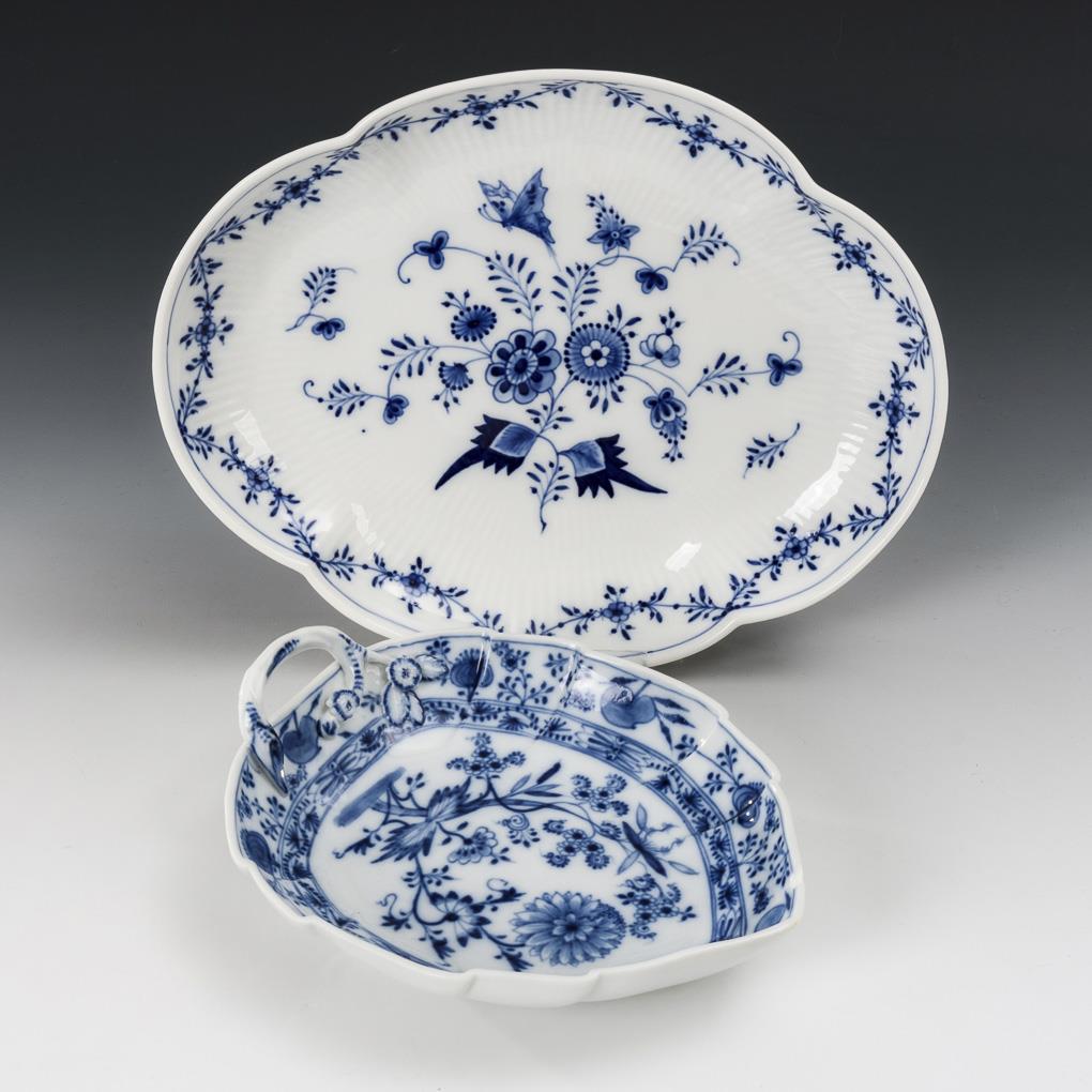 Zwiebelmuster-Blattschale und Vierpasschale mit Blaumalerei. KPM Berlin.