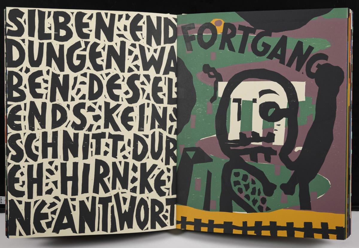 Ausgabe B des komplett vom Künstler gestaltetem Malerbuch mit 29 teils doppelseitigen Farbholzschnitten; 13. Druck der burgart-presse Jens Henkel, Rudolstadt 1995.
