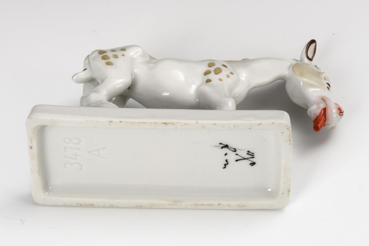 Stehende groteske Figur eines alten Pferdes, bezeichnet "Das letzte Pferd". Minimale Bestoßung am Sockelrand.