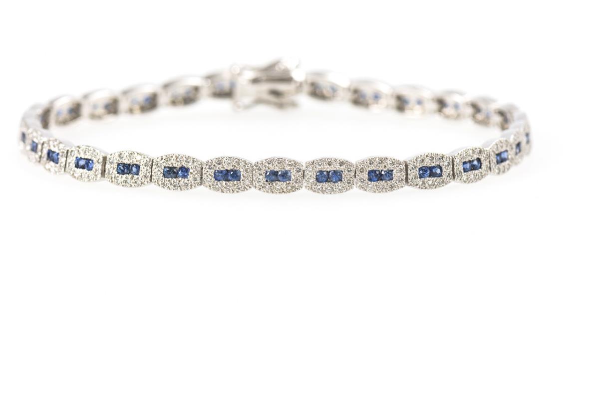 Armband mit 60 eingelassen Saphiren und 300 kleinen Brillanten in Pavéfassungen an Kastenschloss mit 2 Achtersicherungen.