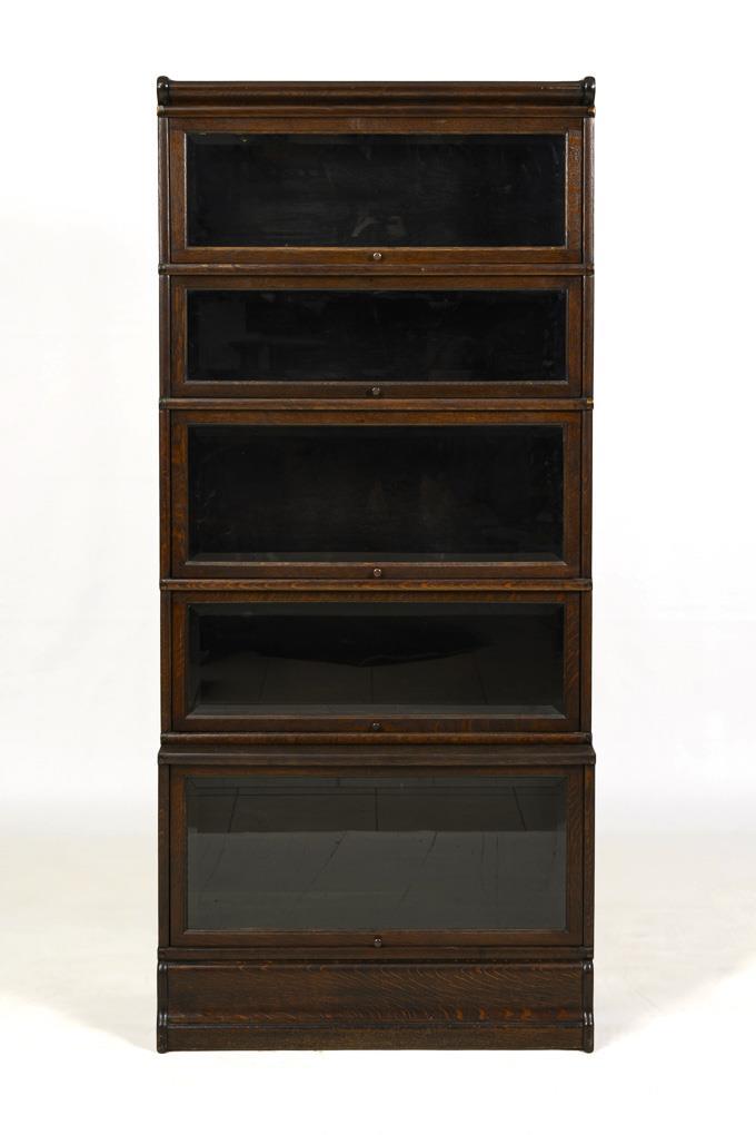 Sogenanntes "Bookcase" mit 5 facettiert-verglasten und versenkbaren Frontklappen, zusammengesetzt aus einzelnen Elementen, die jederzeit erweiterbar oder entnehmbar sind. Leichte Alters-/Gebrauchsspuren.
