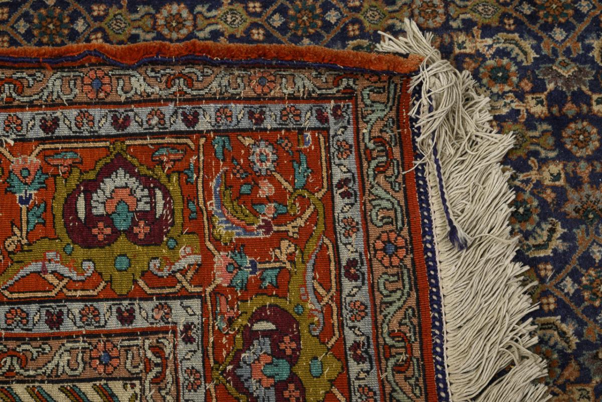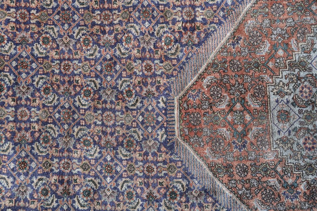 Wolle, handgeknüpft. Polychromdekor mit vorwiegend Rot- und Blautönen. Ca. 233 x 334 cm.