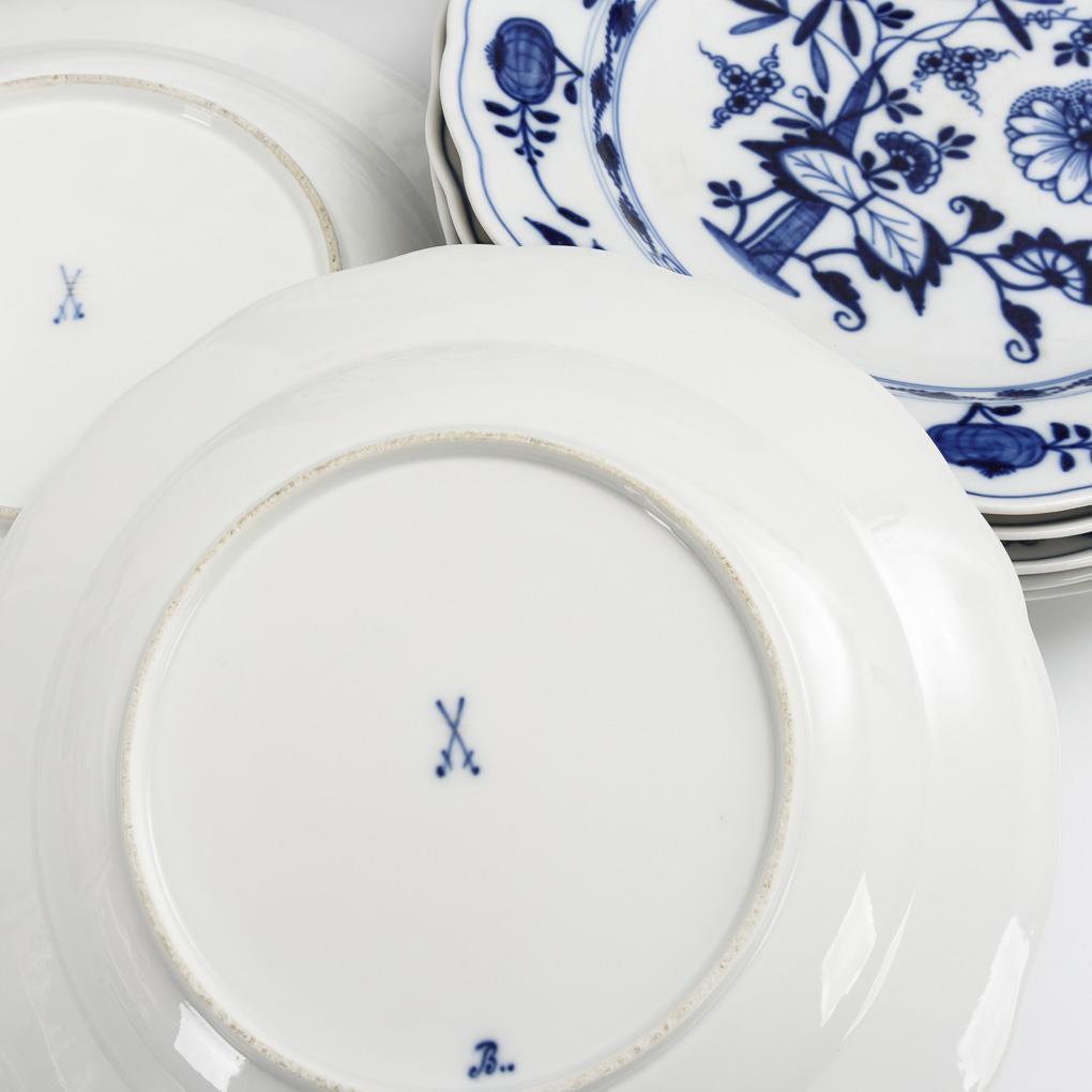 8 Speiseteller in der Form "Neuer Ausschnitt". 1x kleiner Brandriss am Rand.