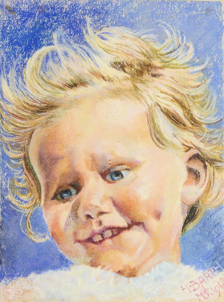 Lachendes Kleinkind mit wildem blonden Haar im hellen Sonnenschein unter blauem Himmel.