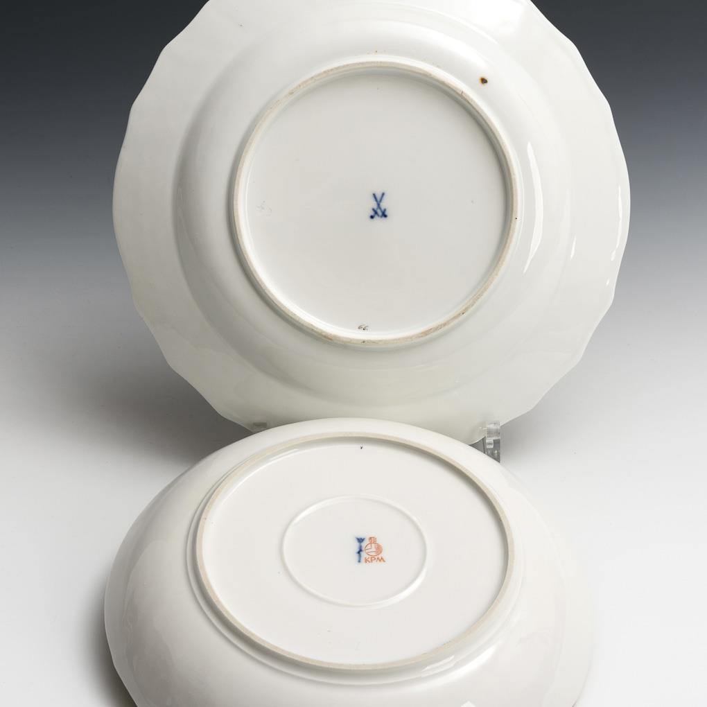 1x KPM Berlin, Zeptermarke und roter Reichsapfel, Form "Neuozier"./ 1x Knaufschwerter, Meissen, ab 1850-1924, 1. Wahl., Form "Neubrandenstein".