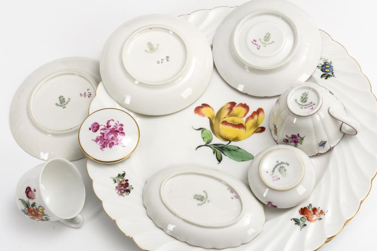9 Porzellane mit Blumenmalerei. Nymphenburg.