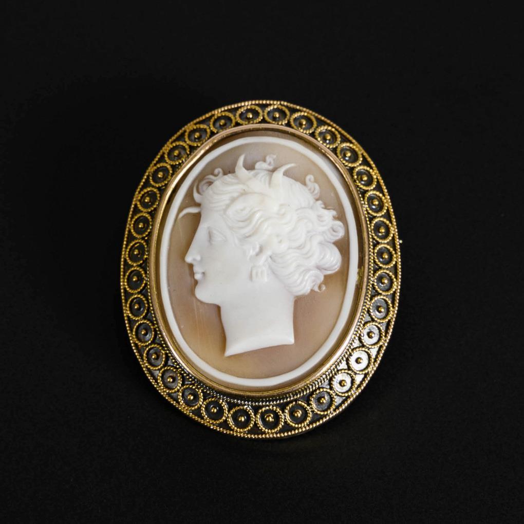 Medaillonbrosche mit Muschelkamee Ende 19. Jh.