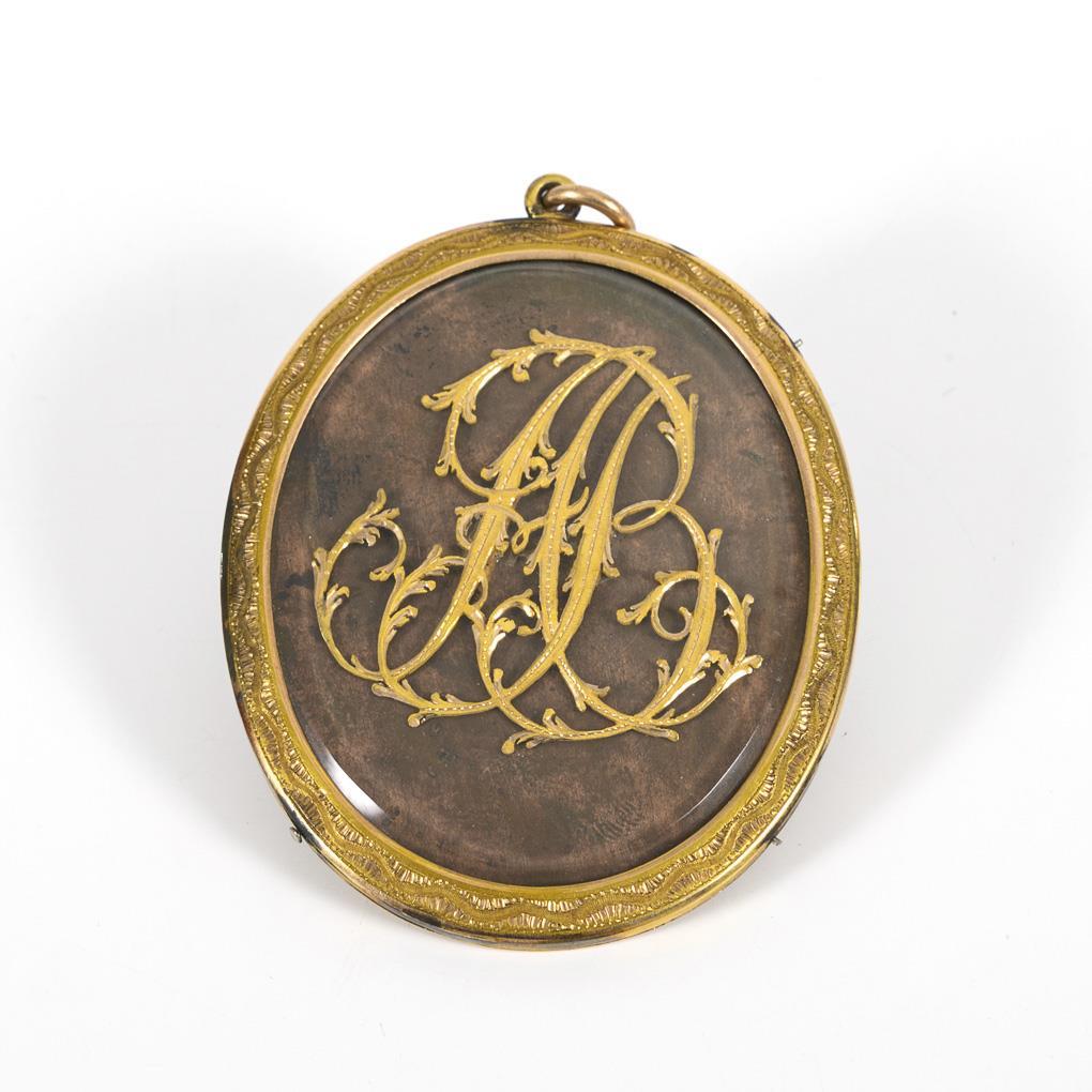 Beidseitig verglaste Empire-Miniatur: Herrenporträt und verschlungenes Monogramm.