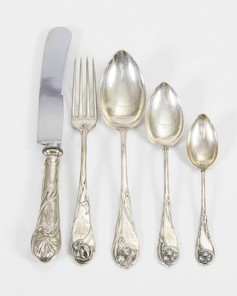 30-teiliges Jugendstil-Silberbesteck. Bruckmann & Söhne, Heilbronn.