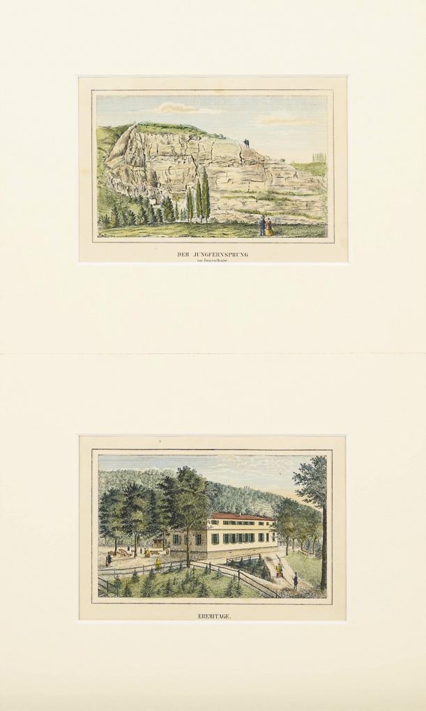 Abbildung je: 10,5 x 15 cm, im Passepartout je: 22 x 26,5 cm.