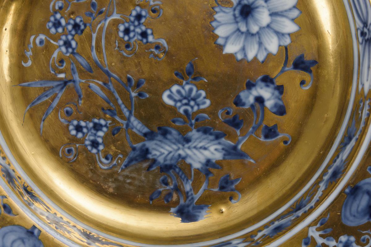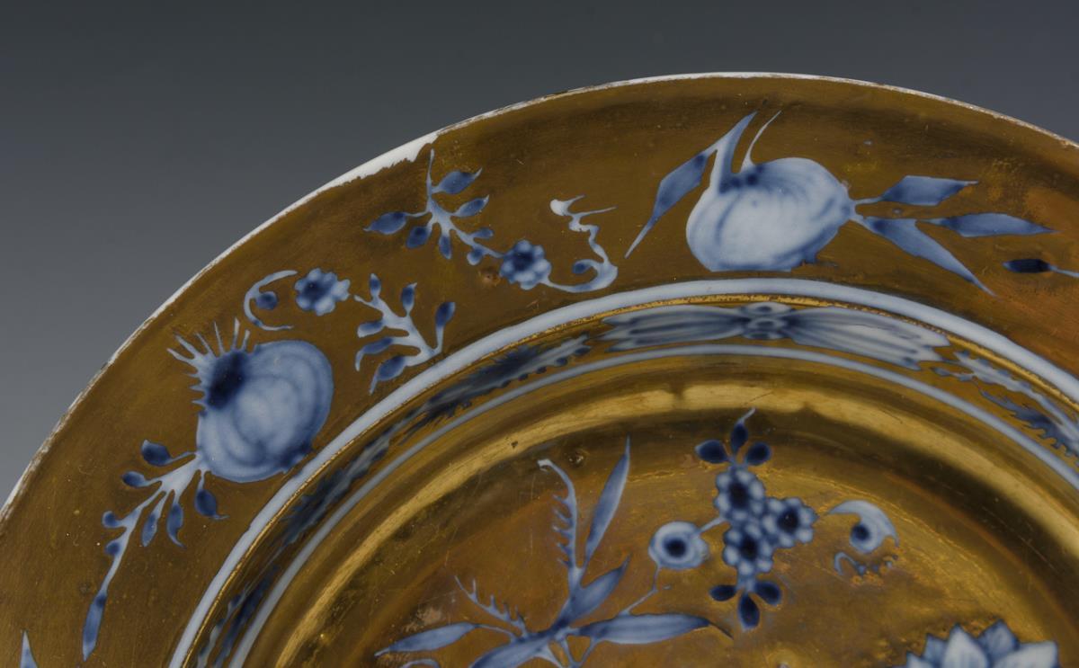 Barocker Teller mit Blaumalerei und Goldfond. Meissen.