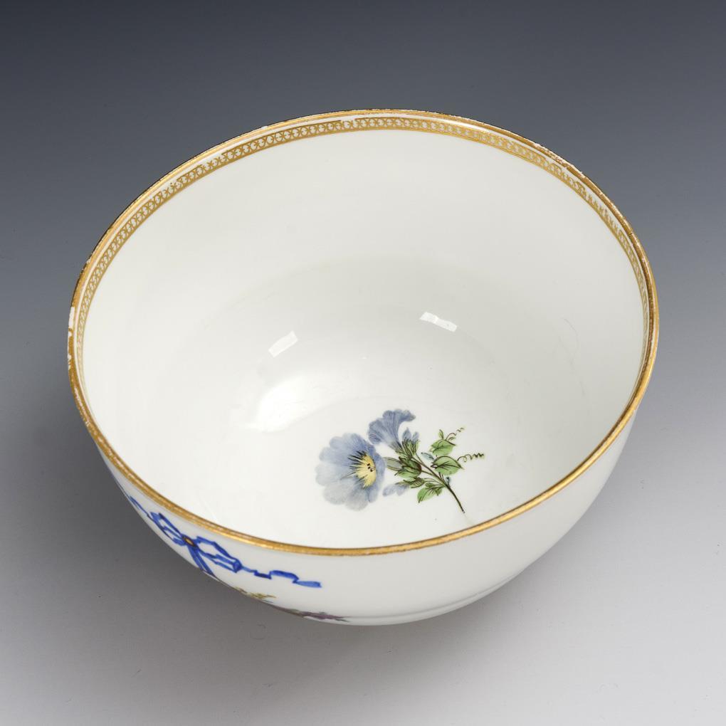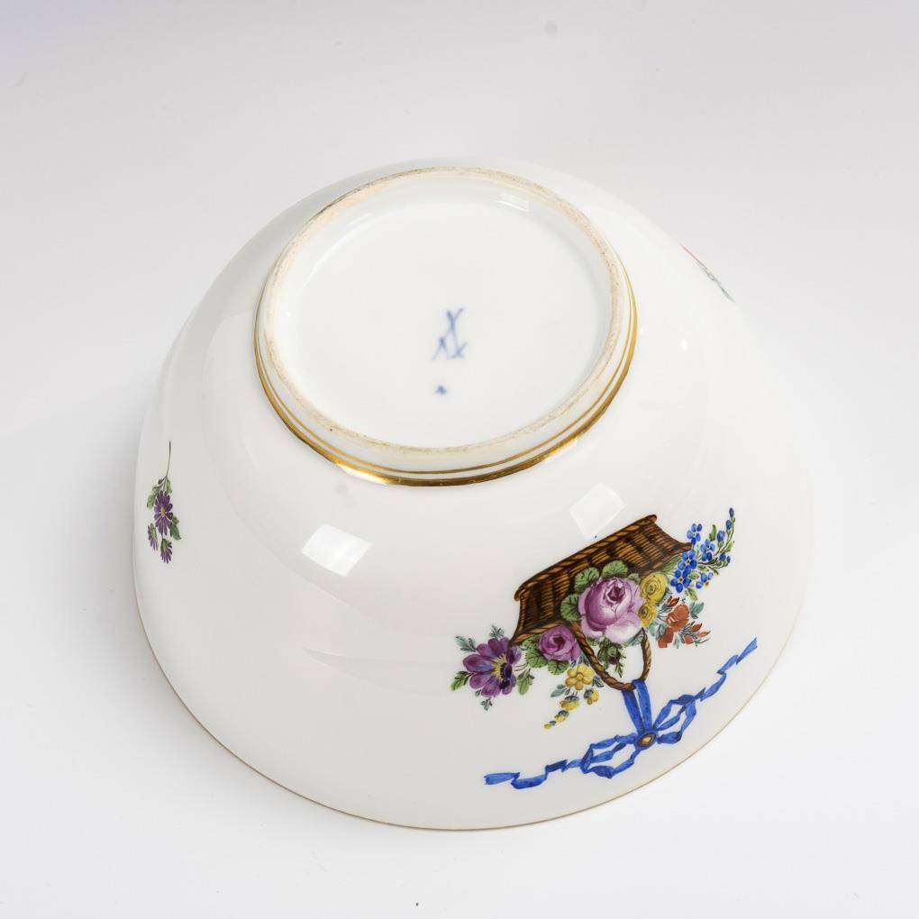 Polychrom bemalt, goldstaffiert. H 9 cm, Ø 16,5 cm.