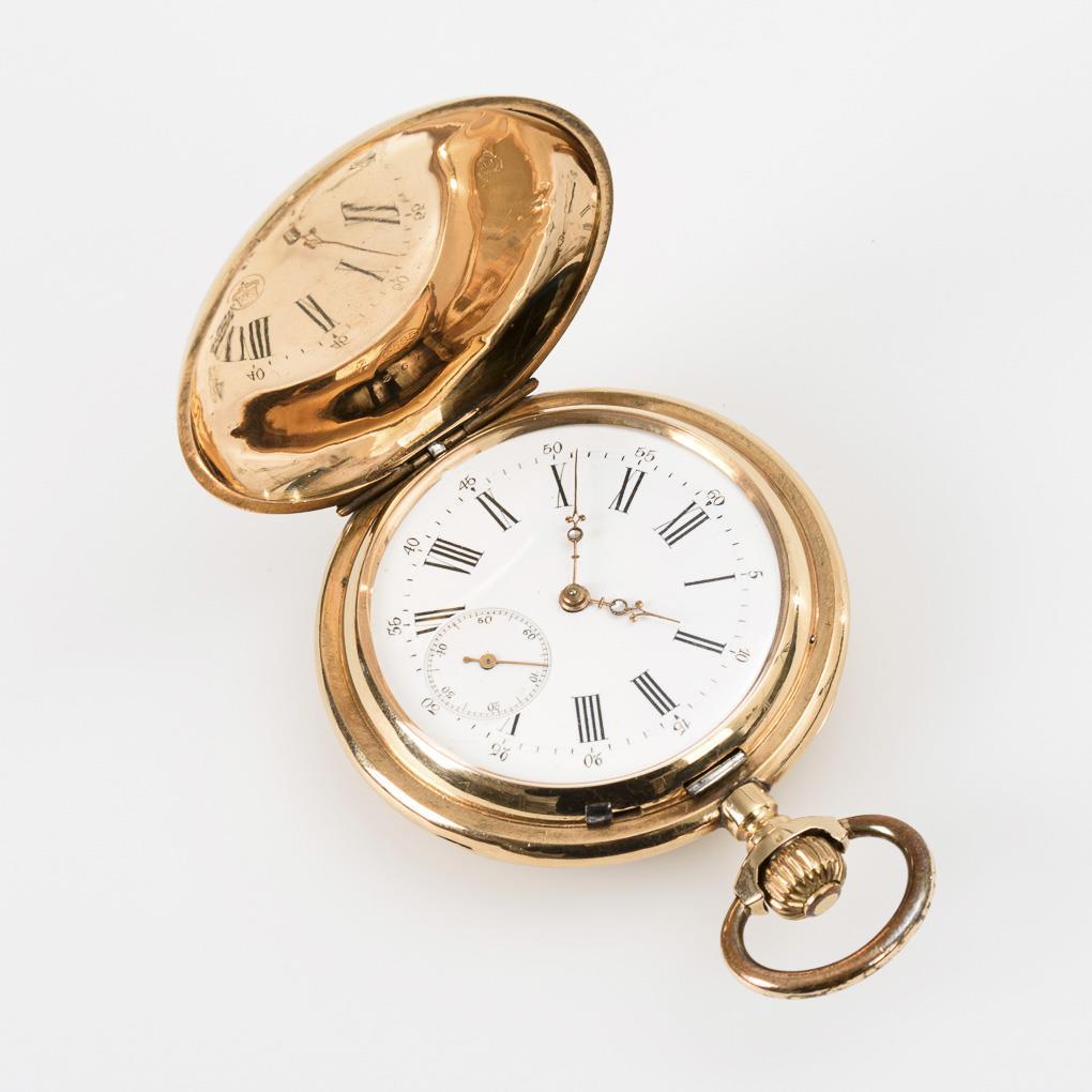 Guillochiertes Sprungdeckelgehäuse mit leerer Wappenreserve. Leichte Gebrauchsspuren.