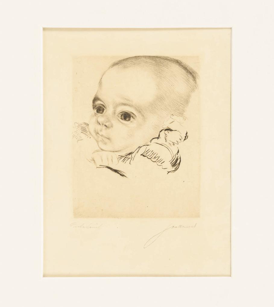 Kaltnadelradierung mit Tuschzeichnung. Bleistiftsignatur. Ca. 1930. Probedruck.