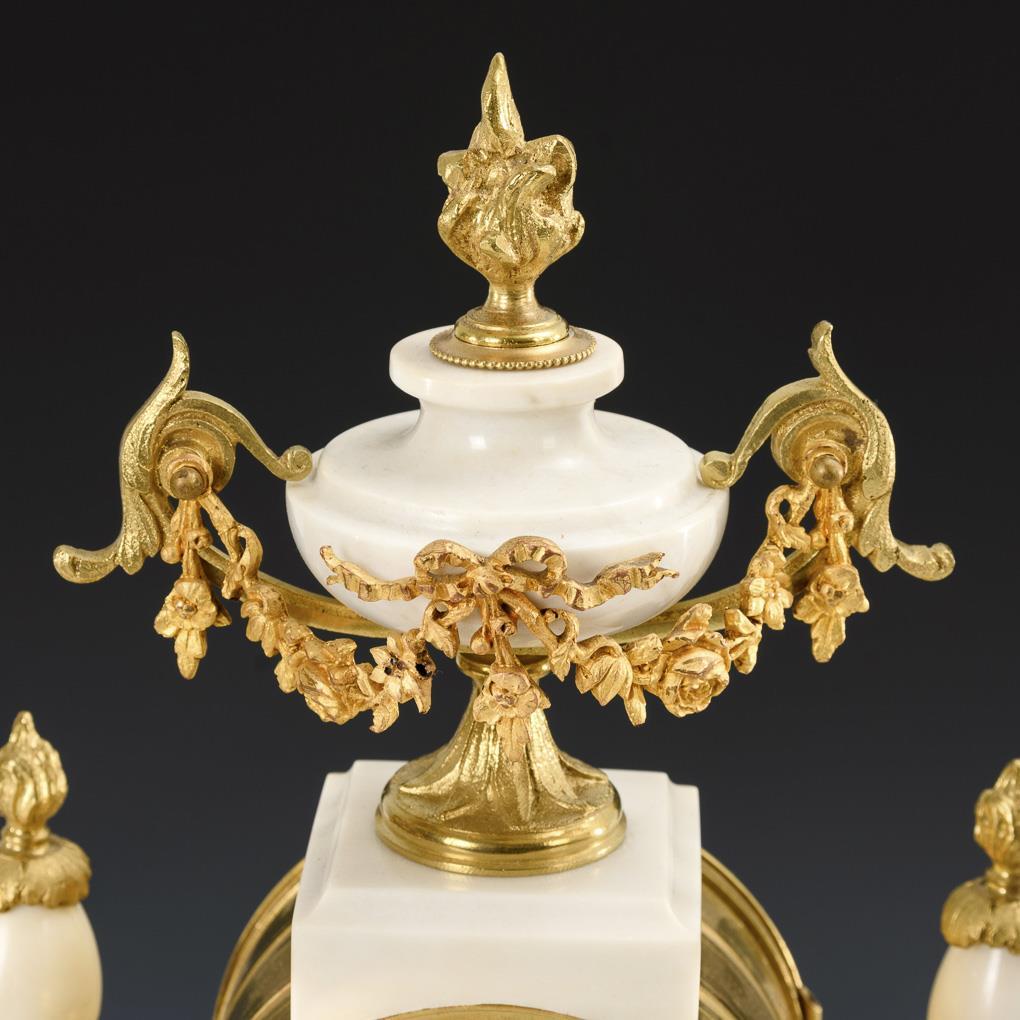 Prunkpendulengarnitur mit 2 Girandolen. A.D. MOUGIN.
