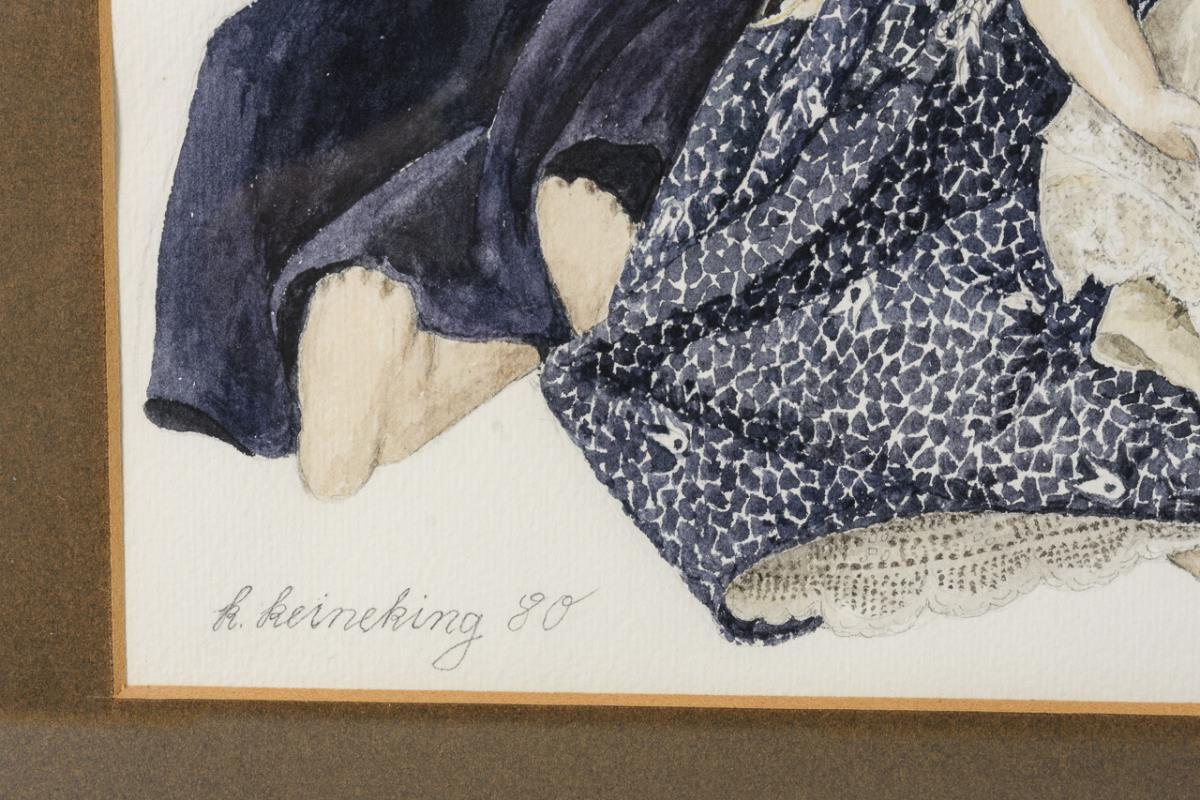 Rose-Marie Reineking hat nicht nur Puppen gesammelt, sondern viele ihrer Sammelobjekte in Aquarellen festgehalten, die durch ihre Detailgenauigkeit und Feinheit bestechen.