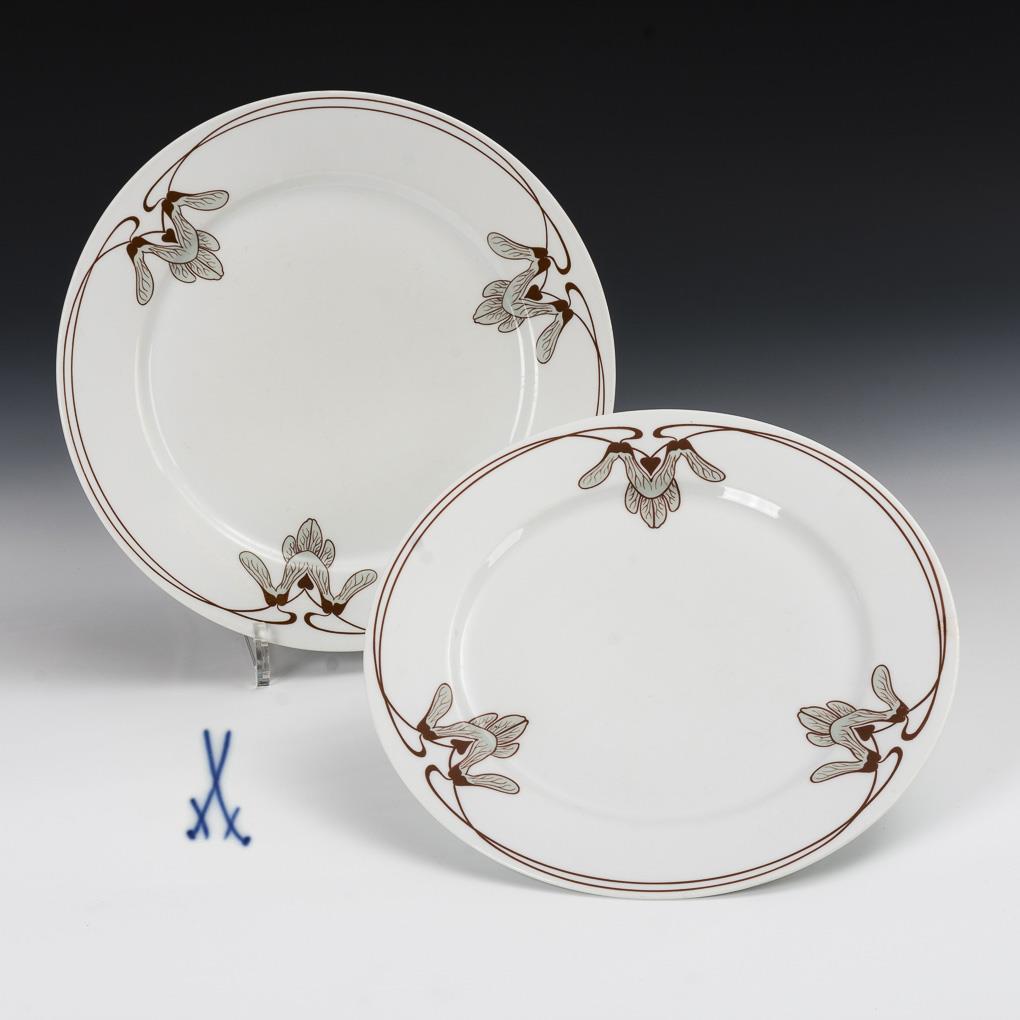 Paar Jugendstil-Speiseteller mit Ahornmuster. Meissen.