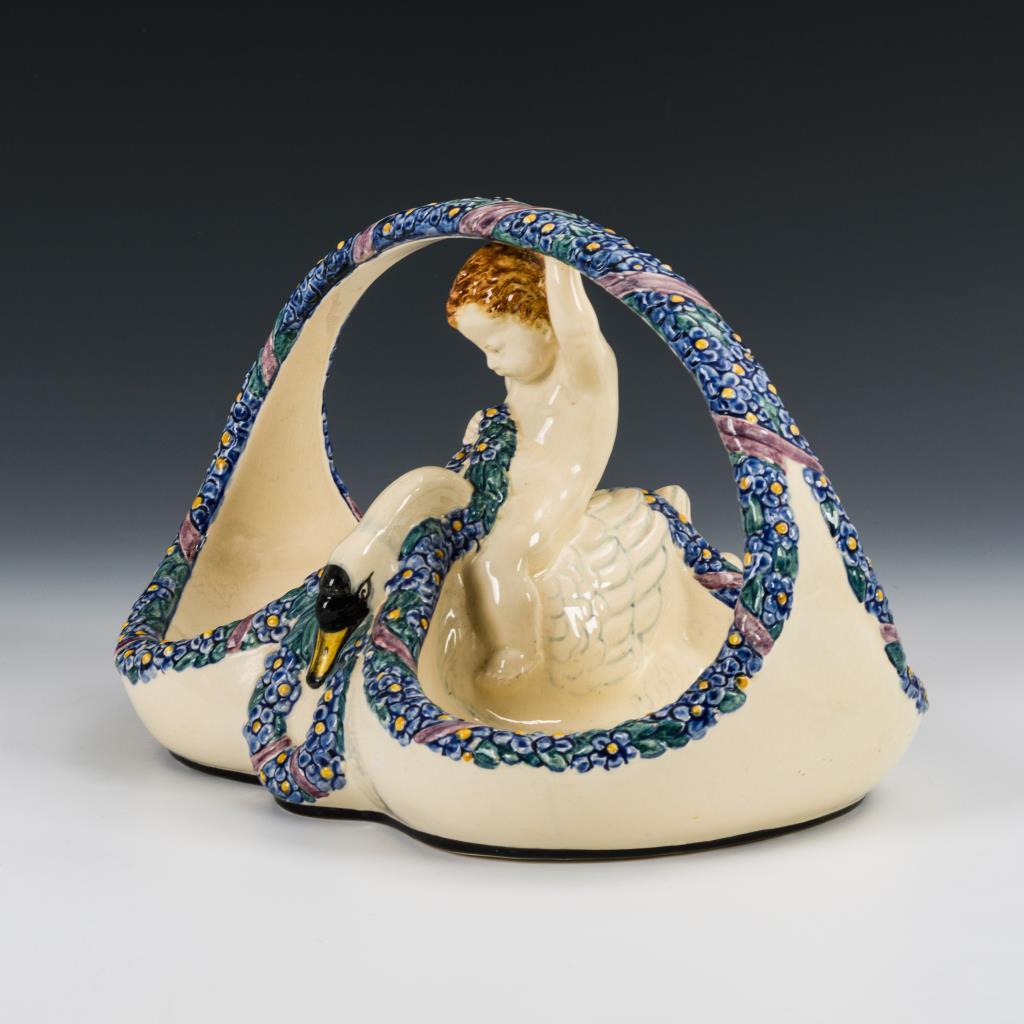 Korb mit Putto und Schwan